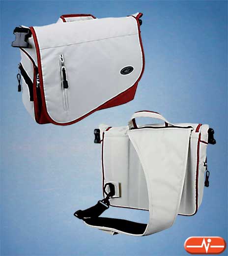 Lujosa maleta de Nylon para portátil, en formato apaisado, con múltiples posibilidades de uso. Realizada con nylon de 900 Deniers y materiales de alta calidad es resistente al agua. Dispone de múltiples compartimentos, algunos de ellos cerrados con cremallera, para llevar tanto accesorios personales como del portátil. En color crema y rojo.