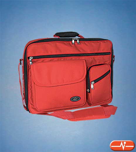 Lujosa maleta de Nylon para portátil, en formato apaisado, con múltiples posibilidades de uso. Realizada con nylon de 420 Deniers y materiales de alta calidad es resistente al agua. Dispone de múltiples compartimentos, algunos de ellos cerrados con cremallera, para llevar tanto accesorios personales como del portátil. Incorpora correa ajustable para llevarla al hombro y asa. En color rojo y reborde en negro.