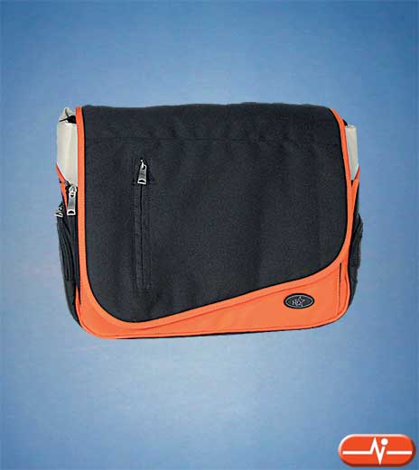 Lujosa maleta de Nylon para portátil, en formato apaisado, con múltiples posibilidades de uso. Realizada con nylon de 900 Deniers y materiales de alta calidad es resistente al agua. Dispone de múltiples compartimentos, algunos de ellos cerrados con cremallera, para llevar tanto accesorios personales como del portátil. Incorpora una correa que se cruza por el pecho para llevarla a la espalda en forma de mochila y un asa de mano. En color naranja y negro.