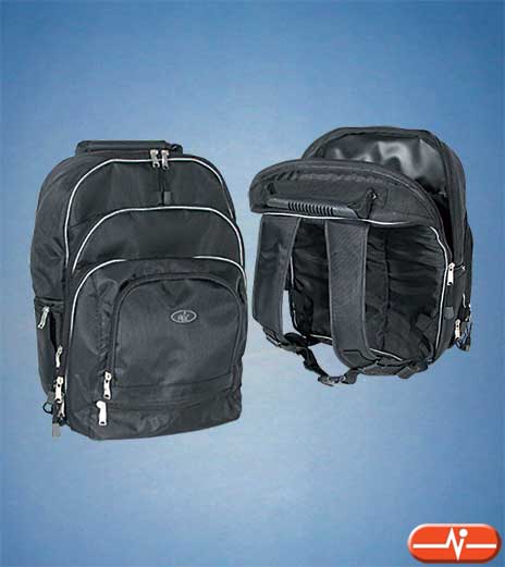 Lujosa mochila de portátil, en formato vertical, con múltiples posibilidades de uso. Realizada con poliéster de 1680 Deniers y materiales de alta calidad es resistente al agua. Dispone de múltiples compartimentos cerrados con cremallera, para llevar, tanto accesorios personales, como del portátil. Incorpora dos correas ajustables para llevarla a la espalda y asa tipo trolley. En color negro y rebordes en color blanco.