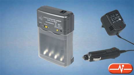 Cargador rápido de pilas recargables del tipo AA y AAA, para sobremesa, con transformador, y que incorpora un adaptador para coche y así poder cargar las pilas mientras se viaja. Dispone de función de refresco y descarga, recomendable para recuperar las pilas más antiguas.