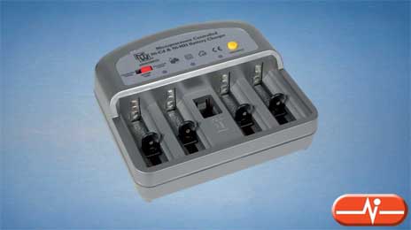 Cargador rápido universal de sobremesa para pilas recargables del tipo AA, AAA, C, D y 9V, incorpora dos circuitos de carga y selecciona automáticamente el tipo de carga según la pila insertada. Dispone de función de refresco y descarga, recomendable para recuperar las pilas más antiguas. Incorpora dos leds para avisar cuando las pilas están totalmente cargadas.