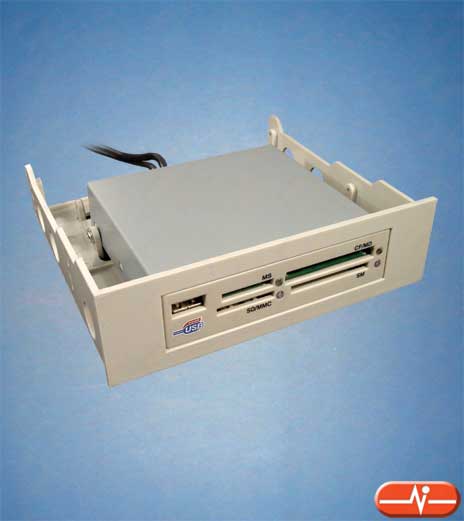 Tipo de conexión | USB tipo A macho, conertor IDC a placa | Zócalo Secure Digital y Multi Media Card | 1 | Zócalo Memory Stick | 1 | Zócalo Smart Media | 1 | Zócalo Compact Flash y Micro Drive | 1 | Soporte para W98, Me, 2000, XP | Sí | Plug & Play | Sí | Tipo de montaje | En bahía de 3,5" y 5,25" | Color | Marfil |