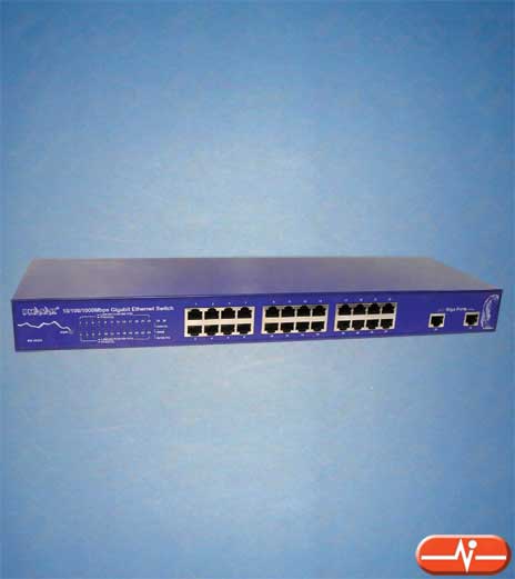 Switch con 24 puertos 10/100 Base TX y dos puertos 10/100/1000 que posibilitan la unión uplink entre switches, pudiendo también ser utilizados como puertos normales para conexiones de Giga Ethernet.