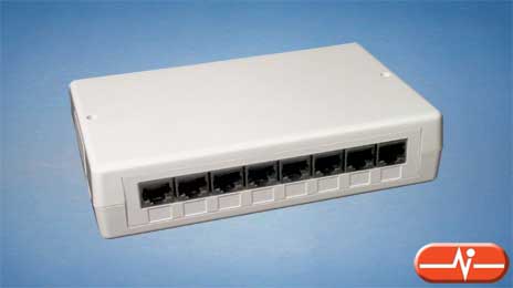 Especialmente diseñado para su montaje en pequeños armarios o en la pared, con 8 conectores de categoría 6 en diseño plano y para herramientas LSA y B110.