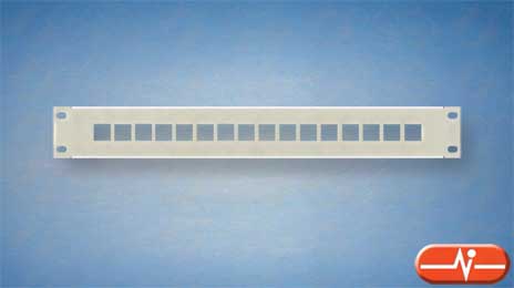 Con este panel de encaje para huecos Keystone podrá disponer de hasta 16 conectores en 1 unidad de altura de su armario. Disponible en color marfil.