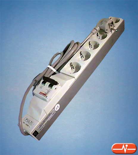 Regleta en formato de 19", con revestimiento en aluminio, con 6 tomas Schuko, de 220 Voltios, 50 Herzios, y disyuntor o automatico de 16 Amperios. La regleta posee una longitud de 440 milímetros y un cable de 2 metros con 3 hilos y 1,5 milímetros de sección. Incluye un par de soportes para fijación en Rack de 19". Este tipo de protección es automática ya que lleva incluido un disyuntor o automatico que se desconecta automáticamente actuando la protección..