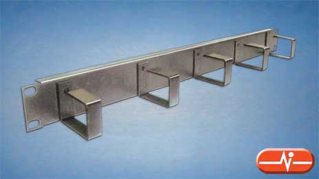Panel frontal 19" para la conducción de cables, con 5 ganchos metálicos y fabricación en acero.