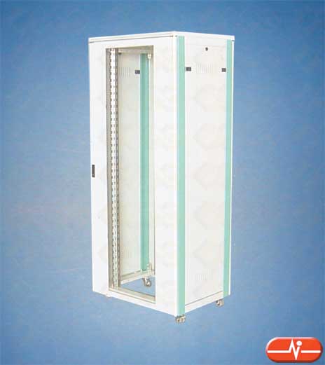 Rack de 19" con puerta frontal en cristal color bronce, equipada con cerradura, con 4 perfiles desplazables de 19", puerta trasera en chapa de acero con llave y panel trasero inferior para permitir la entrada de cables. Los paneles laterales son desmontables y el techo posee ranuras de ventilación. Incluye cuatro patas regulables en altura, están disponibles en 37U.