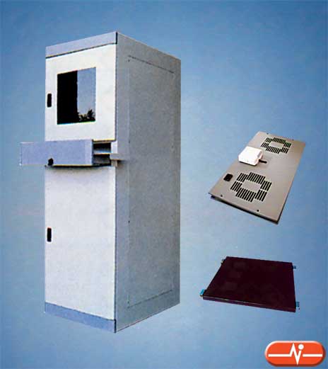 Rack industrial de 19" para PC's, de 36U con puerta superior frontal en vidrio para monitor, equipada con llave. La bandeja frontal intermedia incluye tapa abatible para teclado y puerta inferior frontal ciega con llave. Compuesto por una bandeja fija para monitor y una bandeja fija para accesorios en la parte inferior. Incluye un conjunto de ventilación de techo con 2 ventiladores y termostato ambiente (10º a 30ºC).