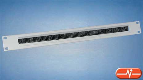Panel frontal de 19'' en aluminio gris con 1U de altura y cepillo para la protección de los cables.
