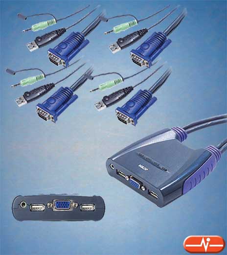 Este cconmutador automático USB destaca por su alta resolución de vídeo (2048 x 1536 ppp), así como por la facilidad de uso, permitiendo al usuario el control de hasta 4 PC's con un único teclado, monitor y ratón con cables de 1,20 metros de longitud.