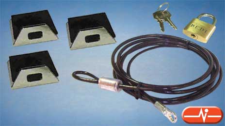 Este kit de seguridad protege contra robo sus ordenadores, maquinas de fax, televisores, vídeos y otros aparatos susceptibles de ser sustraídos.