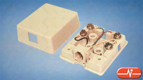 Unidades de terminación de superficie con 1 conexión en color crema y disponibles para RJ11, RJ12 y RJ45.