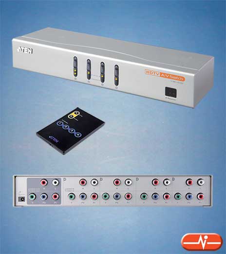 Este conmutador para HDTV hace que el conectar o desconectar dispositivos de vídeo sea una cosa del pasado, ya que permite a los entusiastas de la televisión de alta definición conectar múltiples dispositivos a su pantalla de alta definición gracias a las conexiones de vídeo componente de alta calidad y a las de audio estéreo que incorpora. Incorpora un mando remoto por infrarrojos que permite realizar la selección del dispositivo a visualizar. Está disponible para dos o cuatro dispositivos de alta definición.