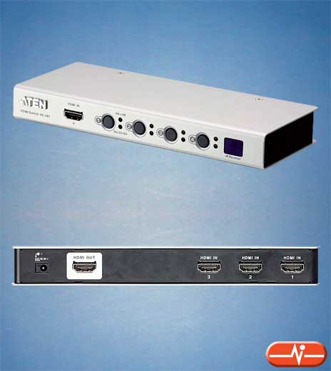 Con este conmutador para dispositivos digitales con conexión HDMI es posible conectar hasta cuatro dispositivos a una sola pantalla y seleccionar cual de ellos se quiere visualizar. Para ello el conmutador dispone de botones frontales y de un mando a distancia por infrarrojos que permite realizar la selección cómodamente.