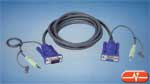 Cable 2 en 1, con un conector VGA hembra y mini jack macho por un extremo y un conector VGA macho y mini jack macho por el otro extremo, para la conexión del audio y vídeo de una CPU a un conmutador. Está disponible en una longitud de 1,8 metros.