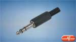 Conector Jack estéreo macho de 6,35 milímetros con protector para cable y tornillo.