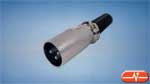 Conector XLR macho de tres pines en metálico con anclaje de seguridad.