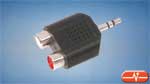 Adaptador de audio con conector jack macho estéreo de 3,5 milímetros y 2 conectores hembra RCA. Fabricado en carcasa negra inyectada.