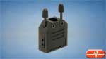 Carcasa con tornillos largos provista de mango de plástico. La ventaja de esta carcasa es el gran ahorro de tiempo en el ensamblaje de cables. Estas carcasas se ofrecen para distintos conectores D-Sub.