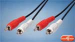 Cable de audio con dos conectores RCA macho por cada extremo para la conexión en dispositivos multimedia.