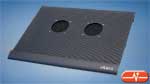 Esta base de aleación de aluminio está estriada para incrementar el flujo de aire frío entre la base y el portátil que los dos ventiladores ultra silenciosos inyectan. La alimentación es suministrada directamente desde un puerto USB del propio portátil.