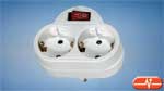 Regleta de pared de dos tomas de tipo schuko. Dispone de un interruptor iluminado.