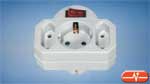 Regleta de pared de tres tomas, de las cuales dos son de tipo Eurosocket y una de tipo schuko. Dispone de un interruptor iluminado.