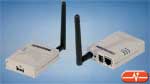 Servidor de impresión inalámbrico específico para impresoras Multifunción USB. Incorpora un puerto USB, un puerto de red RJ45 a 10/100 Mbps y la antena de 2,4 GHz compatible con el estándar 802.11b/g.