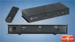 La conexión de Interfaz Multimedia de Alta Definición, o HDMI en inglés, se está convirtiendo en la referencia para la HDTV ya que combina vídeo de alta definición y señal de audio multicanal en un solo cable digital. Este conmutador permite conectar varios dispositivos fuente, como un reproductor de HD/ Blue-Ray DVD o una consola de juegos, a una pantalla con conexión HDMI y seleccionar entre las fuentes a través del mando a distancia que incorpora. Está disponible para 2 o cuatro dispositivos HDMI.