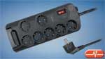 Esta regleta es perfecta para proteger el PC y los periféricos de las subidas de tensión. Los conectores incorporan protección para niños. El interruptor principal permite que todos los dispositivos conectados sean encendidos o apagados simultáneamente.