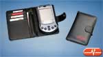 Esta funda le permitirá transportar su PDA de un modo seguro y elegante, fabricada en cuero negro, provisto con soporte para el puntero y cuatro tarjetas de credito.