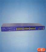 Switch con 24 puertos 10/100 Base TX y dos puertos 10/100/1000 que posibilitan la unión uplink entre switches, pudiendo también ser utilizados como puertos normales para conexiones de Giga Ethernet.