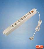 Regleta 19" en plástico con tomas Schuko . Con 440 milímetros de longitud y cable de 1,5 metros. Incluye un par de soportes para fijación en rack de 19".