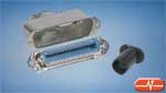 Conector centronics de carcasa metálica para cable redondo. Se ofrecen para conectores centronics de 36 pines.