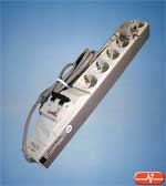 Regleta en formato de 19", con revestimiento en aluminio, con 6 tomas Schuko, de 220 Voltios, 50 Herzios, y disyuntor o automatico de 16 Amperios. La regleta posee una longitud de 440 milímetros y un cable de 2 metros con 3 hilos y 1,5 milímetros de sección. Incluye un par de soportes para fijación en Rack de 19". Este tipo de protección es automática ya que lleva incluido un disyuntor o automatico que se desconecta automáticamente actuando la protección..