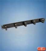 Panel frontal en formato 19" para la conducción de cables, con 5 ganchos metálicos, fabricado en acero. Disponible en 1U ó 2U de altura.