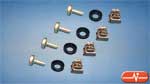 Kit de tornillos para paneles frontales compuesto por tornillos, tuercas y arandelas de plástico.
