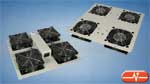 Conjunto de ventilación para el techo con termostato, compuesto por 4 ventiladores. Toma de alimentación tipo IEC. No incluye cable de alimentación. Válido para armarios de 600, 800 y 1000 milímetros de profundidad.