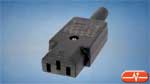Toma para ordenador de 220 V recta con conector IEC 320-C14 hembra de 3 pines. Carcasa ensamblada de color negra.