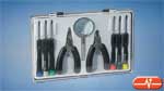 Práctico y útil estuche de herramientas de 9 piezas para uso eventual de la electrónica. Fabricado en plástico flexible y con cierre en cremallera.
