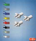 Refuerzos RJ-45 con un diámetro de 5,5 mm. ABS/PVC. Estos refuerzos fuertes y compactos ofrecen, además de una identificación sencilla y protección del cable de transferencia, un aspecto muy profesional pues parece que son moldeados al tener el refuerzo en color blanco y la parte delantera del mismo en diferentes colores.