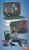 Estuche de herramientas para UTP. Juego completo de montaje UTP en un maletín de fibra sintética. |
