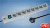 Regleta 19" de aluminio 8 tomas. Regleta de 19", con revestimiento en aluminio, con ocho tomas Schuko de 220 Voltios y 50 Herzios e interruptor. Incluye un par de soportes para fijación en Rack de 19". |