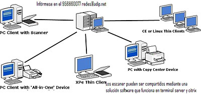 Terminal Services Scanning / Citrix Scanning: Por fin ya puede escanear desde una sesión Terminal Server o Citrix. Disponemos de la solución para poder realizar esta tarea desde Terminal Server o Citrix. Puede controlar un escáner conectado a una estación local o a un thin client. También podrá configurar y compartir el escáner con otros PCS para escanear directamente hacia las aplicaciones residentes en el servidor.